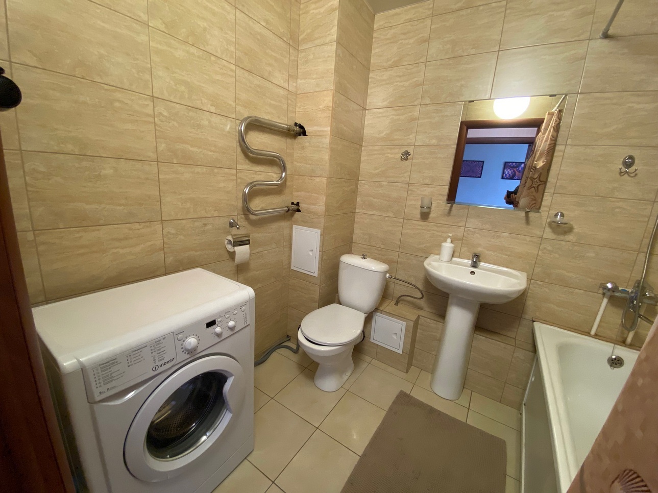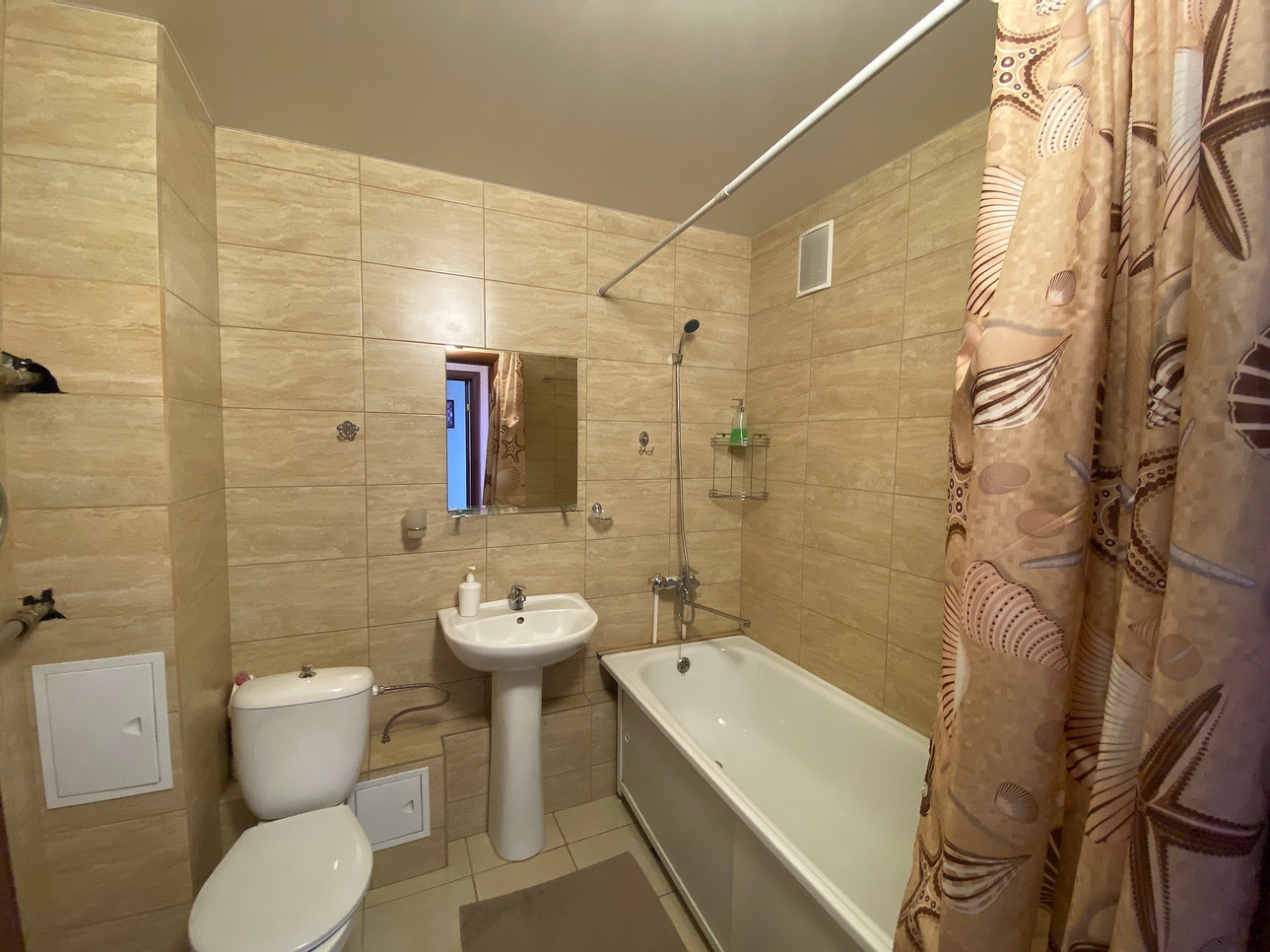 Equipment: Electric tea kettle, Iron, Microwave, Refrigerator, Washing machine, hair dryer, microwave, plate, pots and pans, – everything necessary to cook your own meals, Wi-Fi internet, Satellite TV.