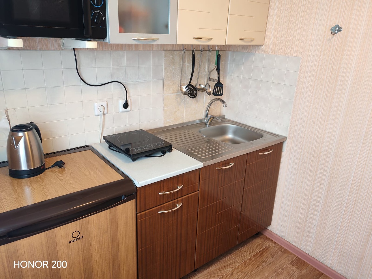 Equipment: Electric tea kettle, Iron, Microwave, Refrigerator, Washing machine, hair dryer, microwave, plate, pots and pans, – everything necessary to cook your own meals, Wi-Fi internet, Satellite TV.